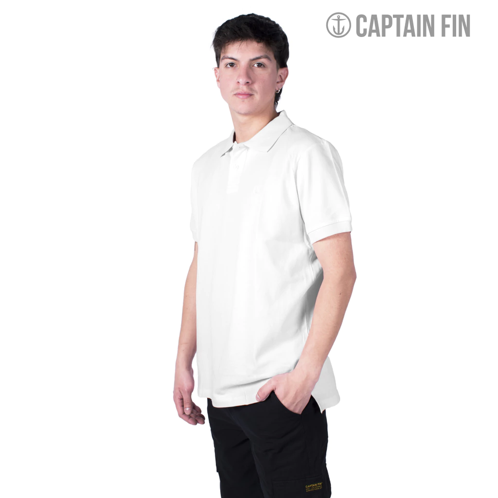 100% Organic Cotton pique Short sleeve polo with rib collar and button placket Contrast interior neck taping Captain Fin anchor logo embroidery at left chest Branded Captain Fin buttons
