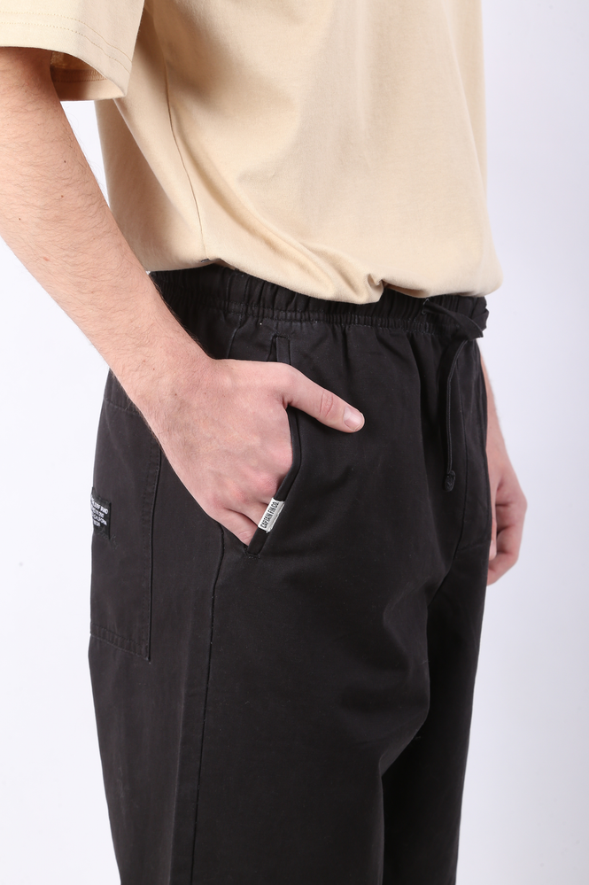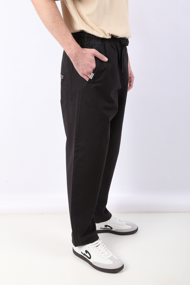 JOGGER RECTO 100% ALGODÓN CON CINTURA ELASTIZADA Y REGULABLE CON CORDÓN. BOLSILLOS DELANTEROS LATERALES Y TRASEROS. AVIOS PERSONALIZADOS Y ETIQUETA DE MARCA TEJIDA CON DETALLE BORDADO EN BOLSILLO TRASERO. EL MODELO USA UN TALLE 32