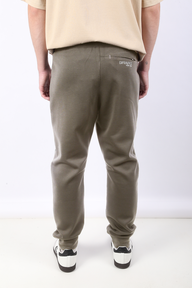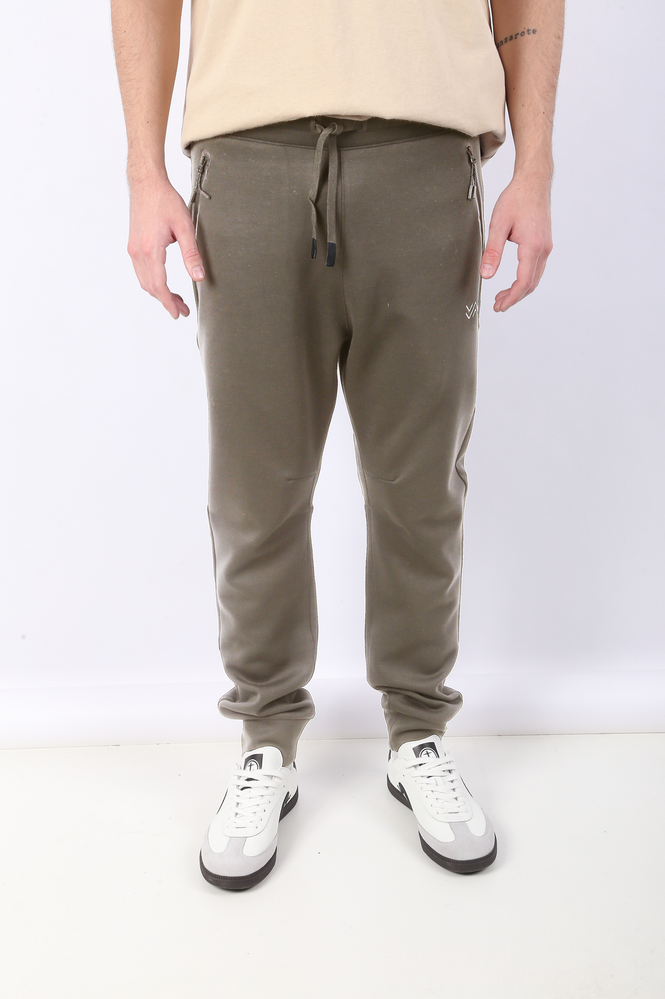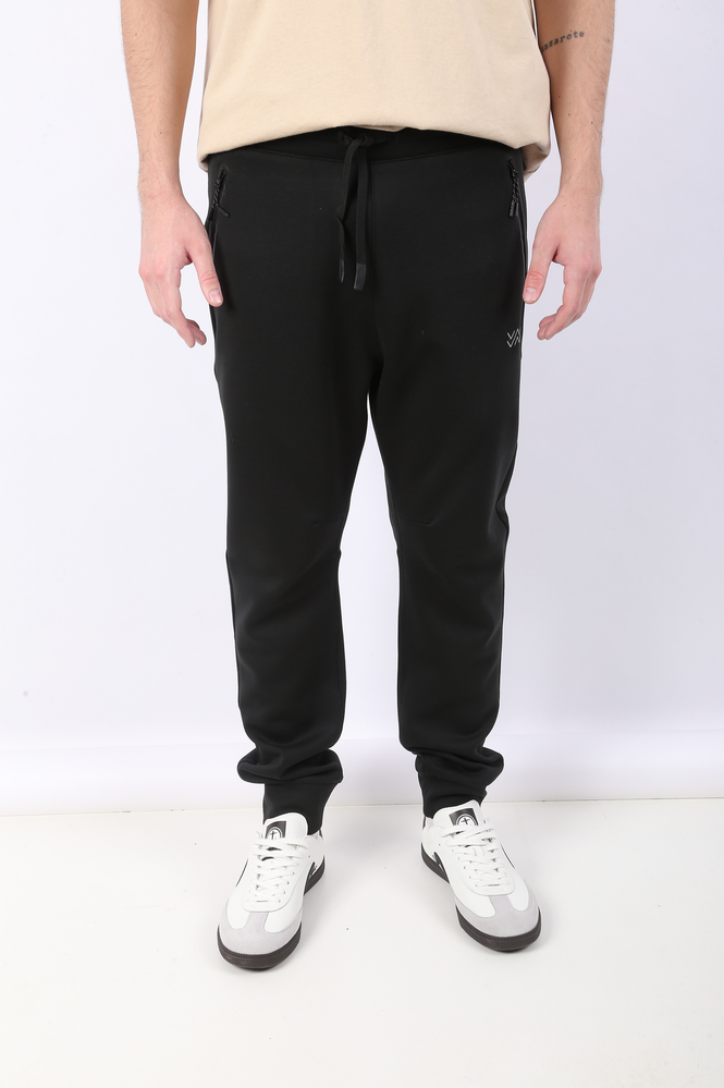 JOGGING COMPOSICIÓN: 770% POLIÉSTER 26% VISCOSA 4% ELASTANO. CINTURA CON ELÁSTICO INTERNO PERSONALIZADO Y REGULABLE CON CORDÓN CUSTOMIZADO. BOLSILLOS CON CIERRES REVERSIBLES CON TERMINACIONES EN VINILO EN DELANTEROS Y TRASERO. LOGO EN SILICONA 3D EN BOLSILLO TRASERO Y AVIOS PERSONALIZADOS. EL MODELO USA UN TALLE 32