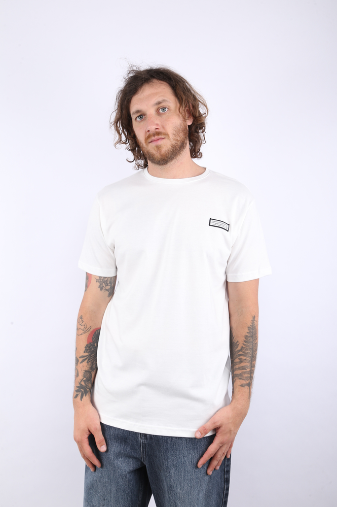 REMERA MANGA CORTA STANDARD FIT CONFECCIONADA EN JERSEY 24/1 100% ALGODÓN. CON ETIQUETA TEJIDA EN CENTRO DELANTERO Y ESTAMPA TACTO CERO EN ESPALDA