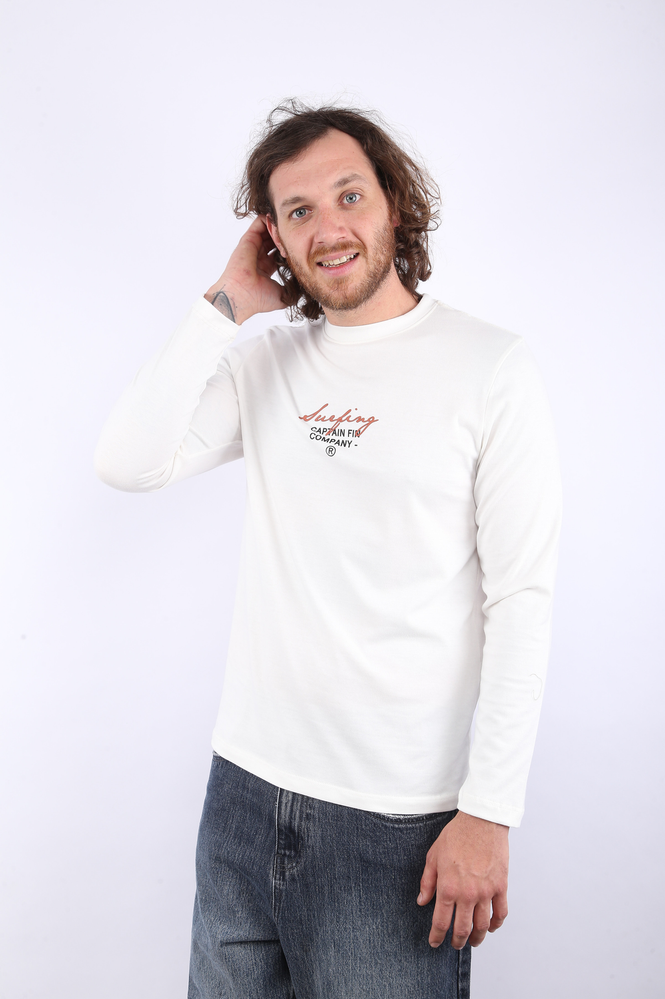 REMERA MANGAS LARGAS CONFECCIONADA EN JERSEY 24/1 %100 ALGODÓN. ESTAMPA EN DELANTERO EN TECTO CERO Y ALTURA EN 3D EL MODELO USA UN TALLE M.