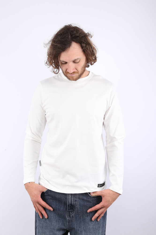 REMERA MANGAS LARGAS CONFECCIONADA EN JERSEY 24/1 %100 ALGODÓN. ESTAMPA EN ALTURA 3D EN DELANTERO . EL MODELO USA UN TALLE M.