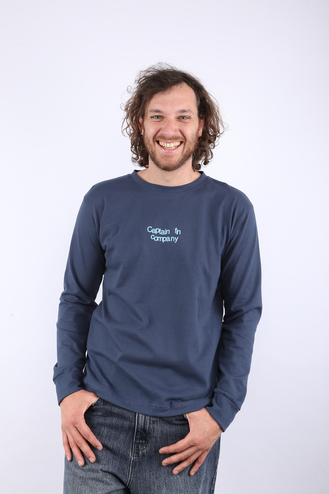 REMERA MANGAS LARGA CON PUÑO CONFECCIONADA EN JERSEY 16/1 %100 ALGODÓN. ESTAMPA SERIGRAFIA TACTO CERO. EL MODELO USA UN TALLE M.