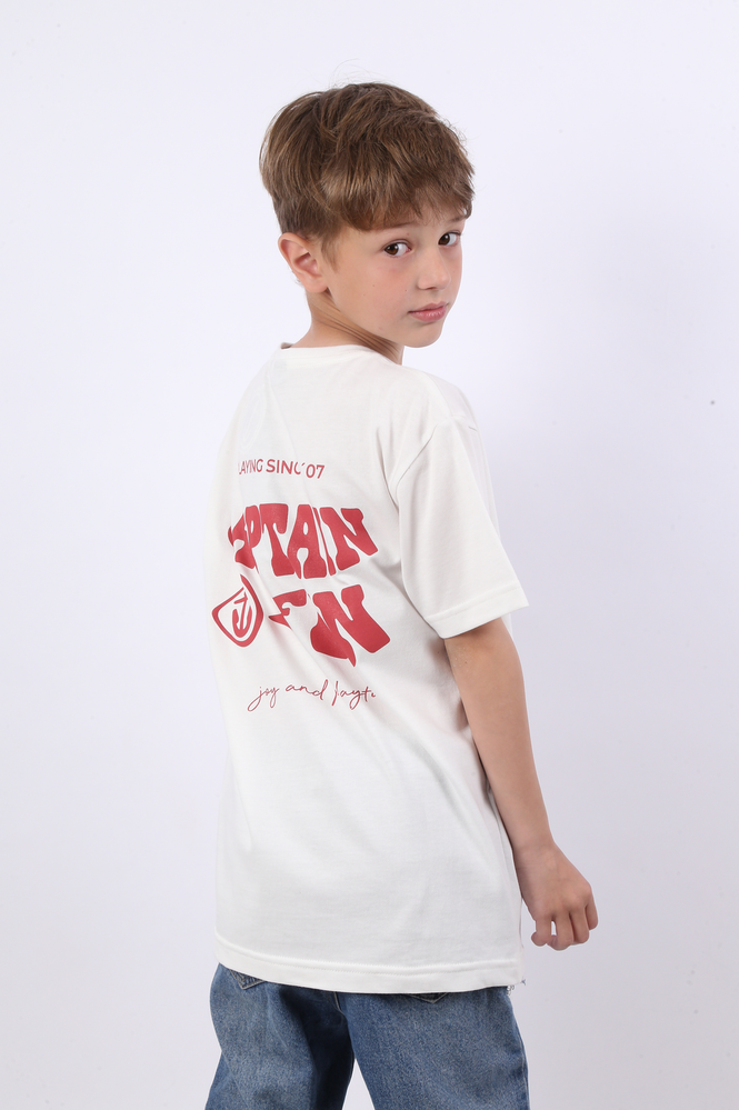 REMERA MANGAS CORTAS CONFECCIONADA EN JERSEY 24/1 CON ESTAMPA TACTO CERO EN DELANTERO Y ESPALDA. 100% ALGODÓN.