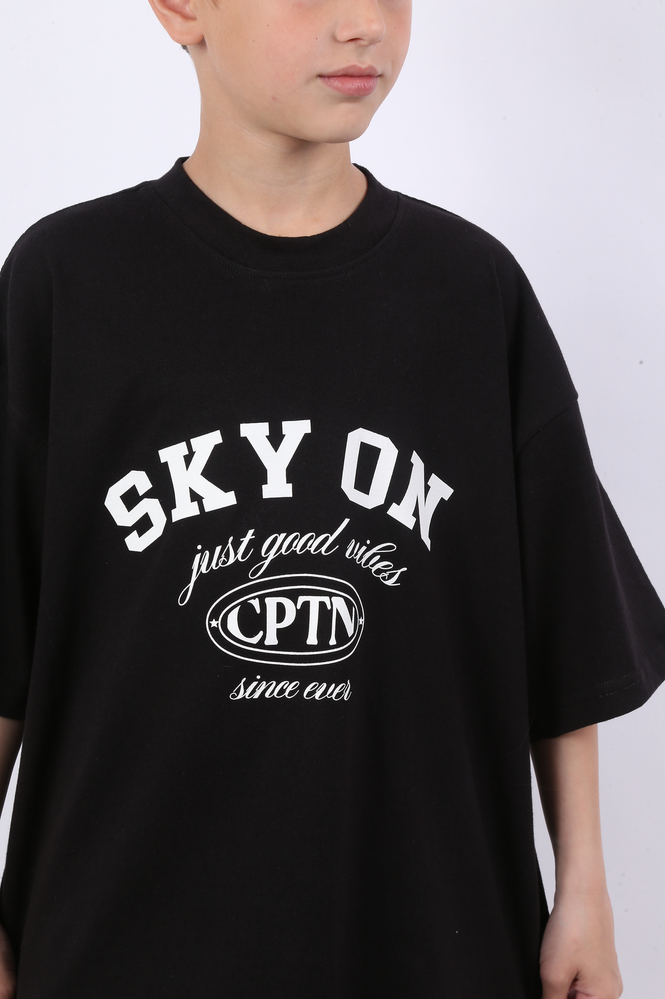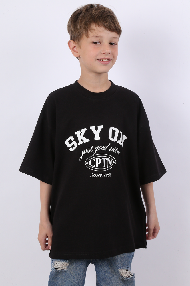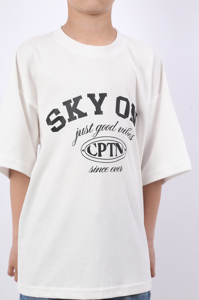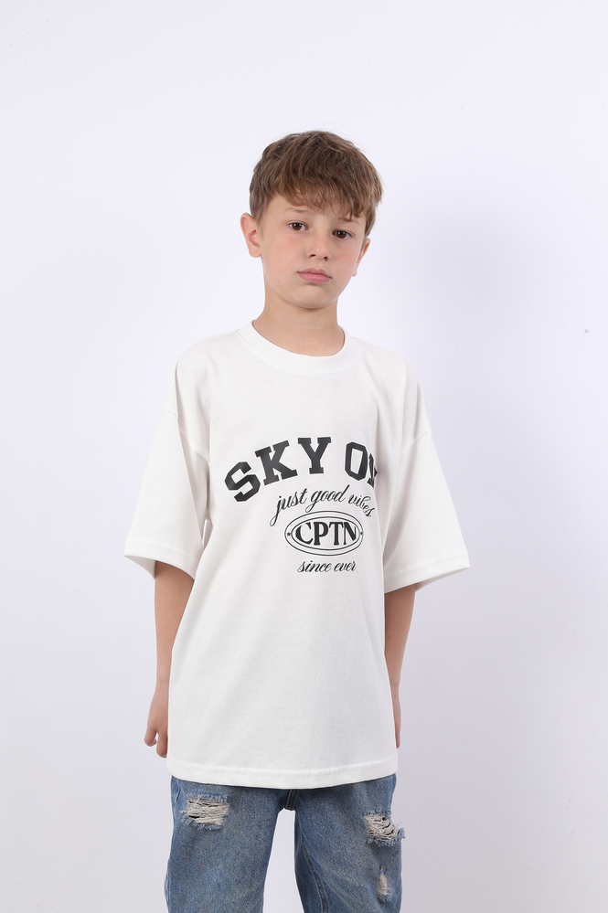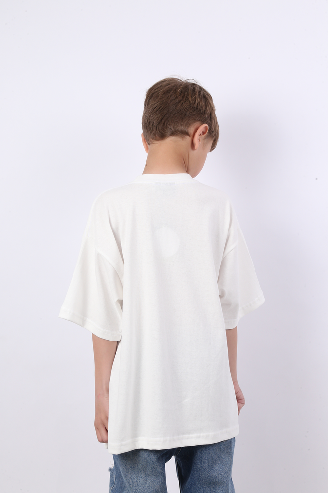 REMERA MANGAS CORTAS FIT OVERSIZE. CONFECCIONADA EN JERSEY 16/1 CON ESTAMPA TACTO CERO EN DELANTERO. 100% ALGODÓN. EL MODELO USA UN TALLE 12
