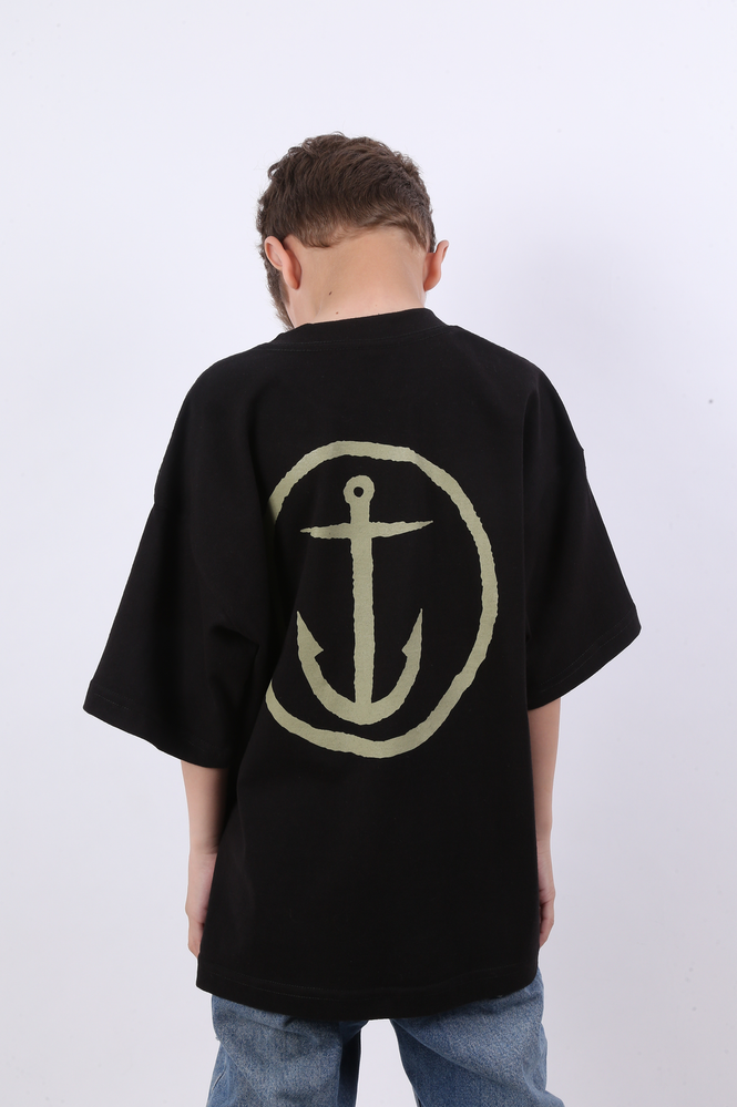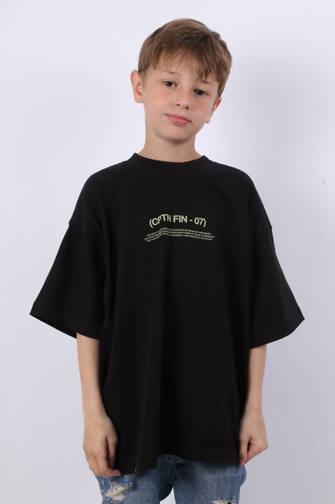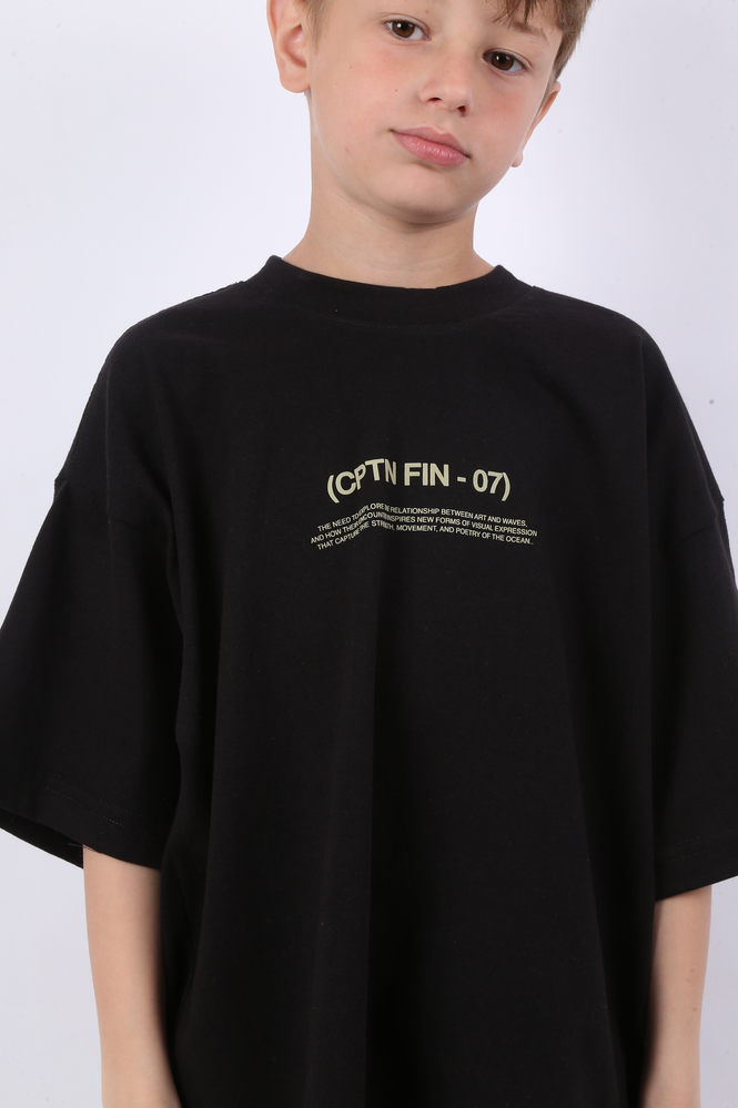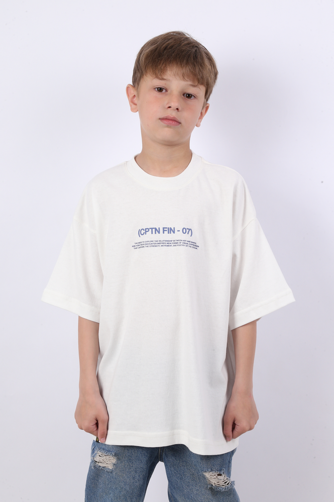 REMERA MANGAS CORTAS FIT OVERSIZE CONFECCIONADA EN JERSEY 16/1 CON ESTAMPA EN ALTURA 3D EN DELANTERO Y ESTAMPA TACTO CERO EN ESPALDA. 100% ALGODÓN.