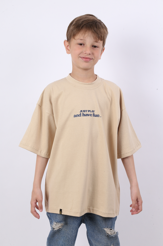 REMERA MANGAS CORTAS FIT OVERSIZE CONFECCIONADA EN JERSEY 16/1 CON ESTAMPA TACTO CERO EN DELANTERO Y ESPALDA. 100% ALGODÓN.