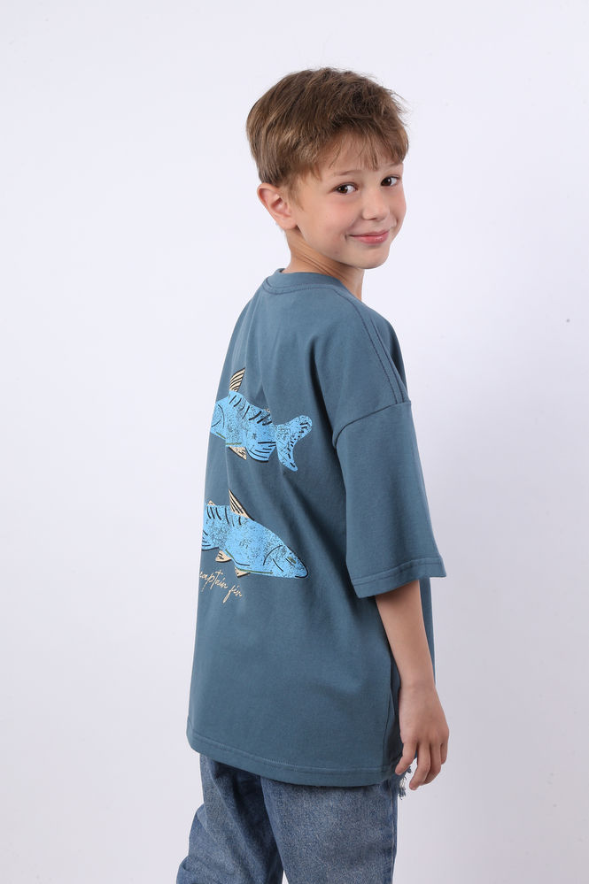 REMERA MANGAS CORTAS FIT OVERSIZE CONFECCIONADA EN JERSEY 16/1 CON ESTAMPA EN ALTURA 3D EN DELANTERO Y ESTAMPA TACTO CERO EN ESPALDA. 100% ALGODÓN.