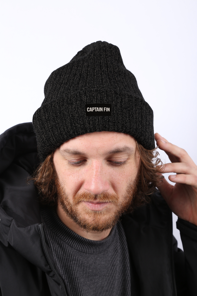 GORRO DE INVIERNO ESTAMPADO CON ETIQUETA TEJIDA CENTRO DELANTERO.