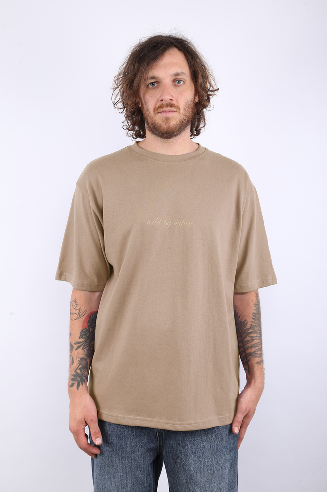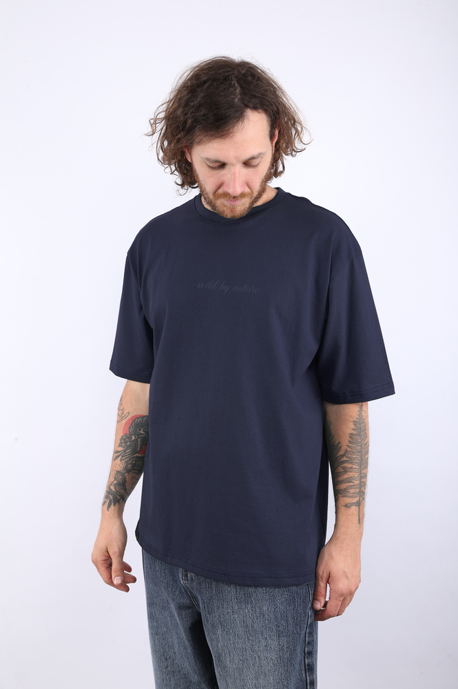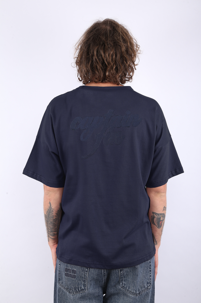 REMERA OVERSIZE MANGA CORTA CONFECCIONADA EN JERSEY 100% ALGODÓN CON BORDADO CLASICO EN DELANTERO Y PARCHE CON EFECTO DESGASTADO EN ESPALDA.