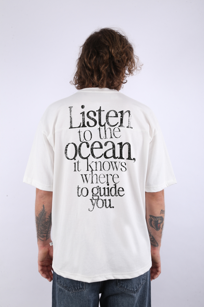 REMERA OVERSIZE MANGA CORTA CON RECORTE EN ESPALDA. CONFECCIONADA EN JERSEY 100% ALGODÓN. BORDADO CLÁSICO EN DELANTERO Y ESTAMPA EN ESPALDA.