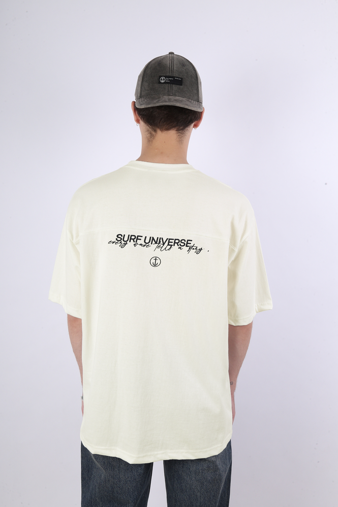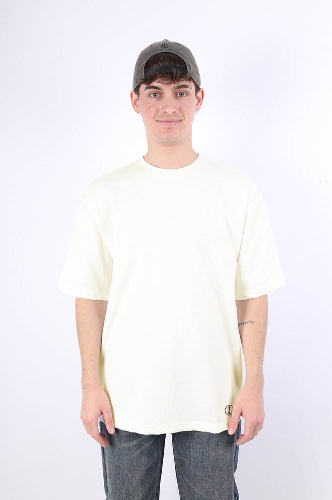 REMERA OVERSIZE MANGA CORTA CON RECORTE EN ESPALDA. CONFECCIONADA EN JERSEY 100% ALGODÓN. BORDADO EN DELANTERO Y ESPALDA .