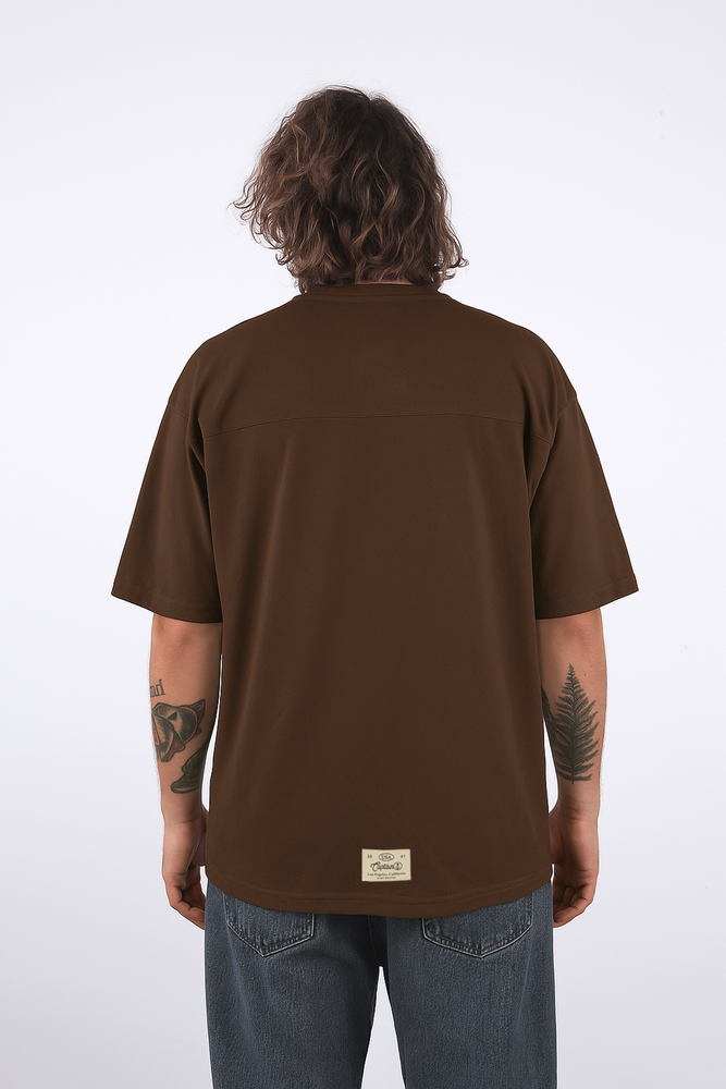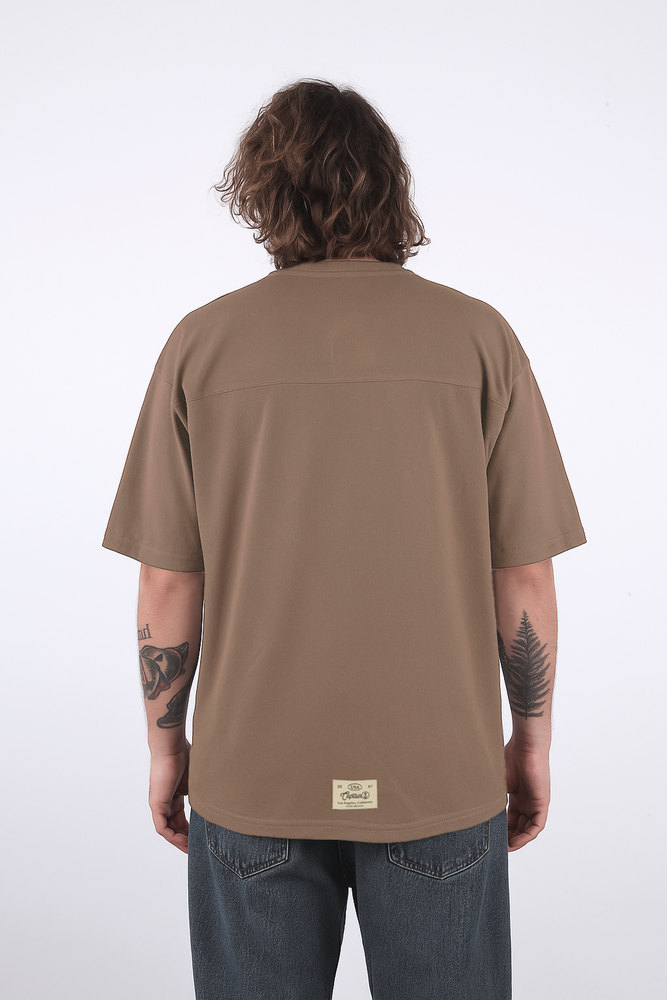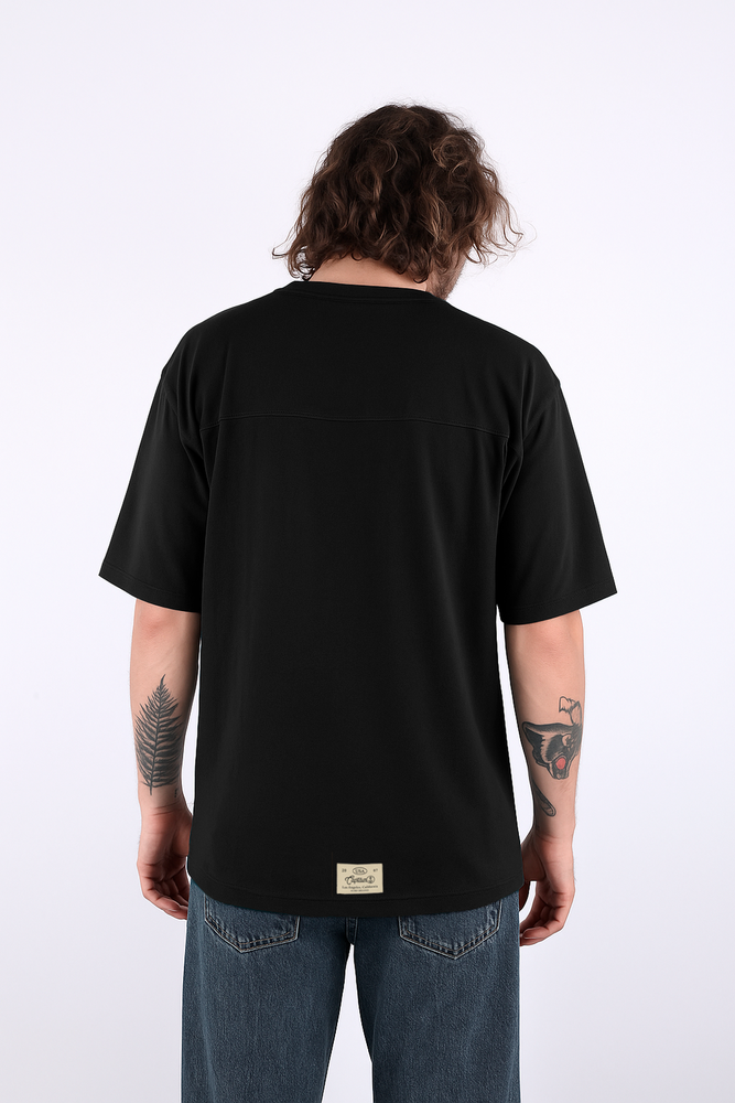 REMERA OVERSIZE MANGA CORTA CON RECORTE EN ESPALDA. CONFECCIONADA EN JERSEY 100% ALGODÓN. BORDADO CLÁSICO EN LATERAL SUPERIOR DELANTERO Y ETIQUETA TEJIDA CON BORDES REMATADOS EN ESPALDA.