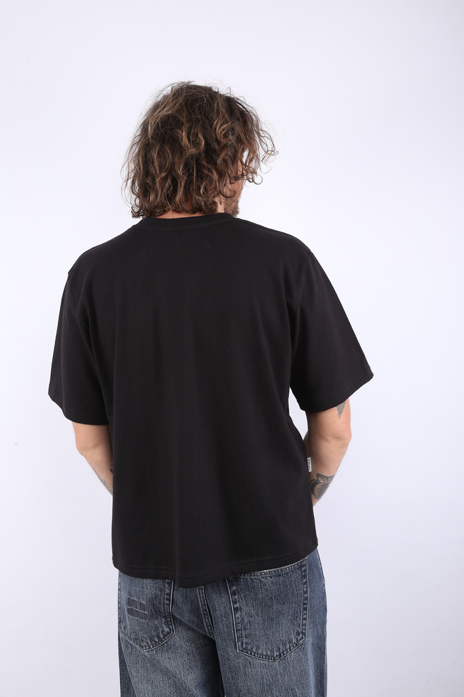 REMERA BOXY FIT MANGA CORTA CONFECCIONADA EN JERSEY 100% ALGODÓN. BORDADO EN CENTRO DELANTERO. EL MODELO USA UN TALLE M