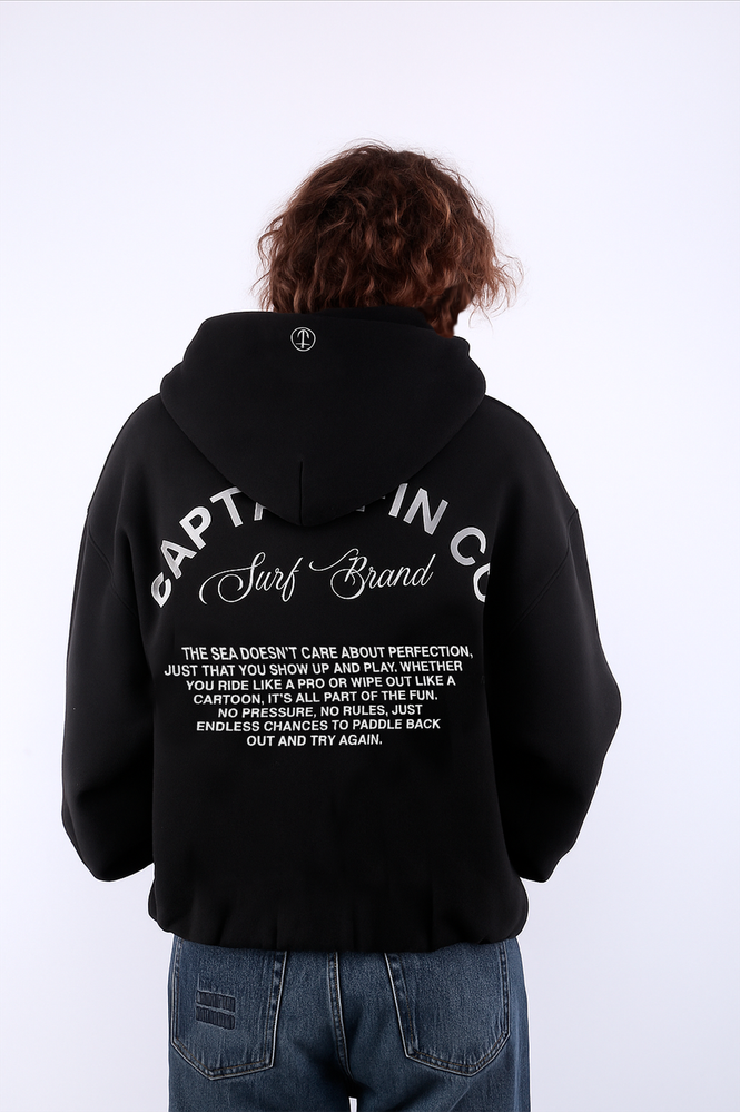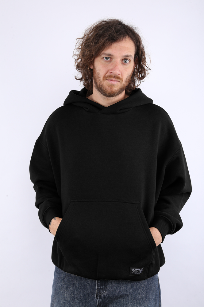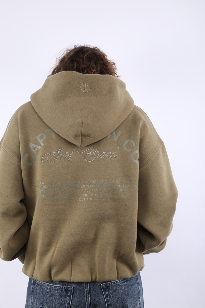 BUZO CANGURO CON BOLSILLOS Y CAPUCHA. ESPALDA ESTAMPADA Y BORDADA. DETALLE BORDADO EN CAPUCHA.