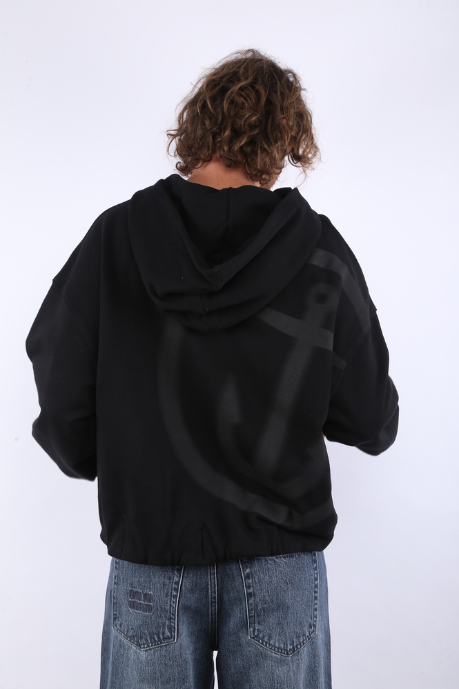 BUZO CANGURO CON BOLSILLOS Y CAPUCHA. ESTAMPA PUFF 3D EN DELANTERO Y ESTAMPA EN ESPALDA. COMPOSICIÓN: 100% ALGODÓN FRENCH TERRY EL MODELO USA TALLE M