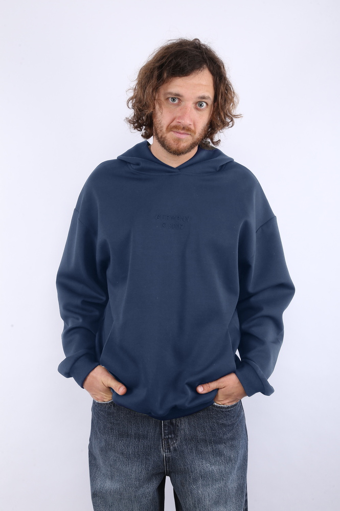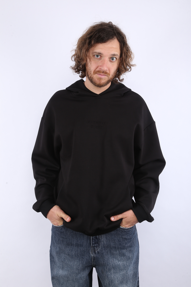 BUZO CANGURO CON BOLSILLOS FRONTALES Y CAPUCHA. . GOFREADO EN CENTRO DELANTERO Y BORDADO AL TONO EN ESPALDA BAJA COMPOSICIÓN: 74% ALGODÓN 20% POLIÉSTER 6% ELASTANO / INTERLOCK EL MODELO USA UN TALLE M