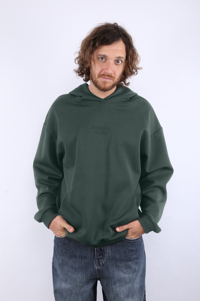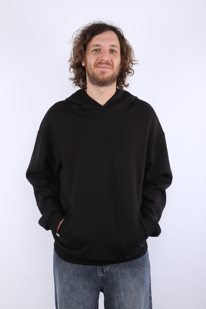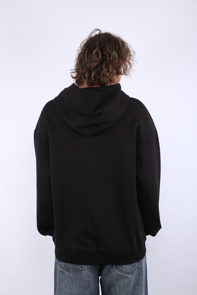 BUZO CANGURO CON BOLSILLOS FRONTALES Y CAPUCHA. . GOFREADO EN CENTRO DELANTERO Y BORDADO AL TONO EN ESPALDA BAJA