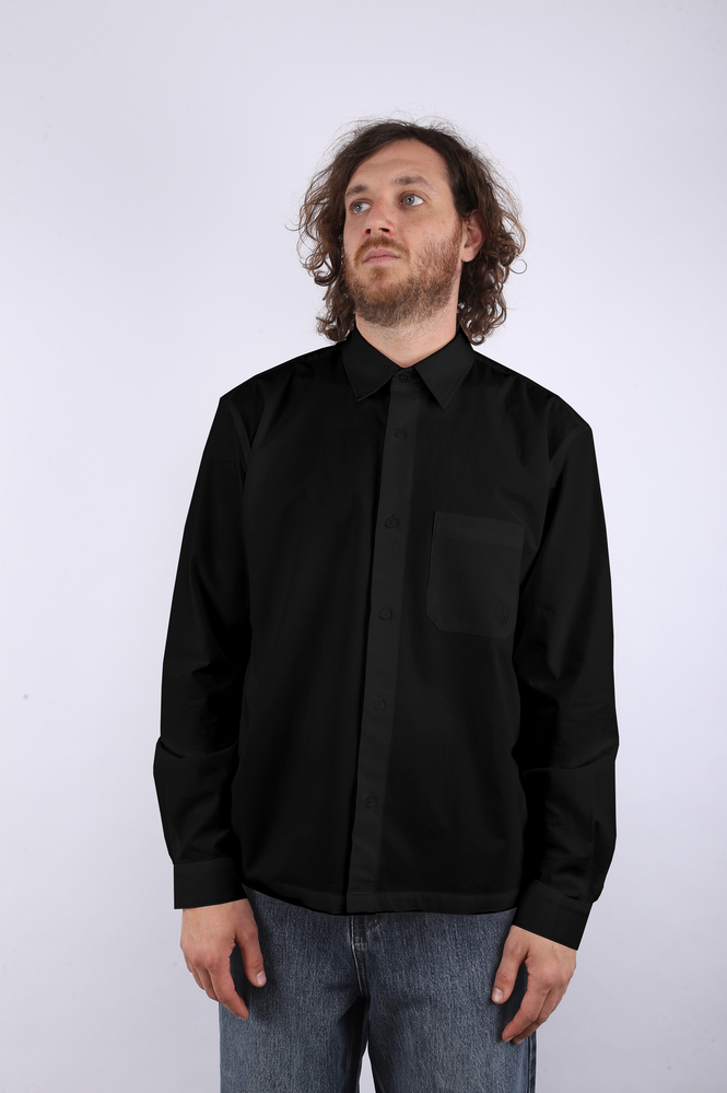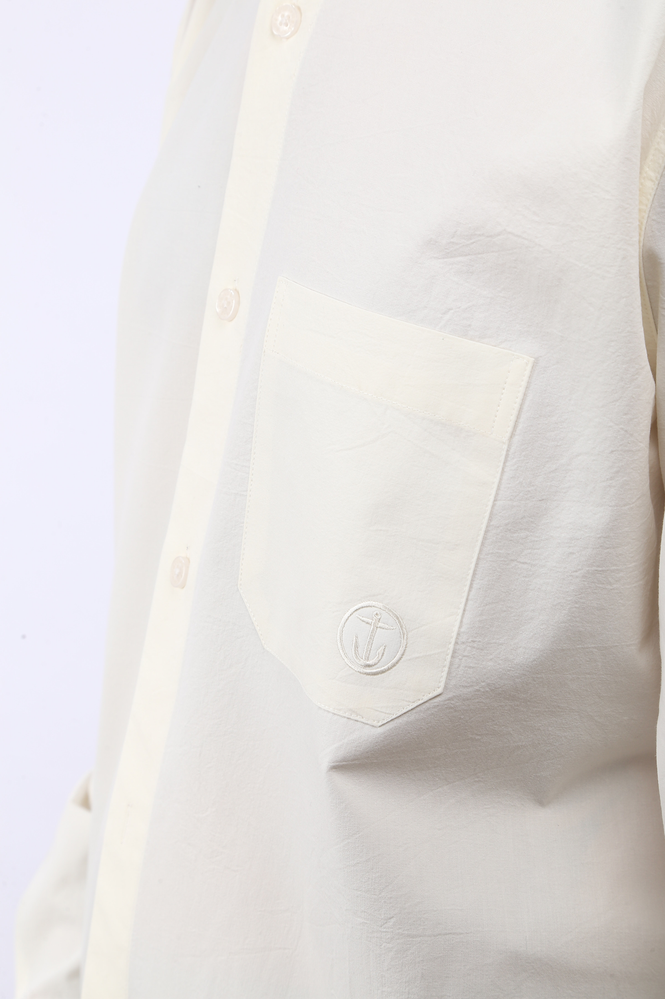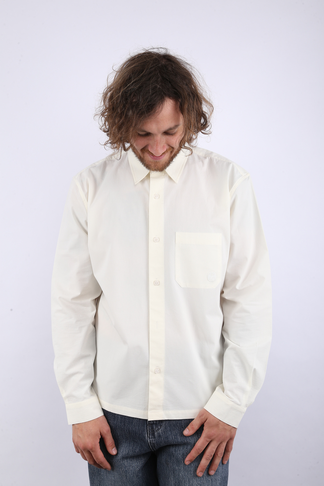 CAMISA MANGA LARGA CON BOLSILLO EN PECHO IZQUIERDO Y DETALLE DE BORDADO AL TONO. CUELLO CLÁSICO Y CARTERA CON BOTONES A TONO. PUÑOS AJUSTABLES CON BOTÓN. COMPOSICIÓN: 100% ALGODÓN EL MODELO USA TALLE M