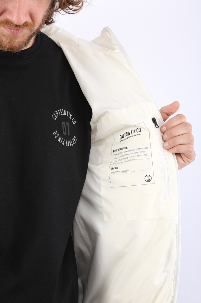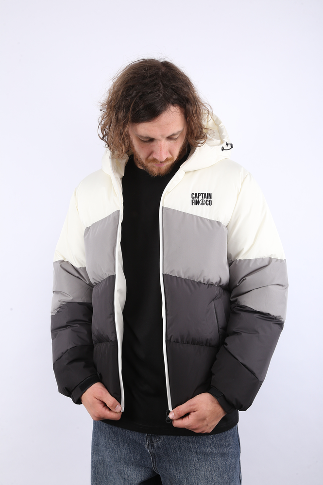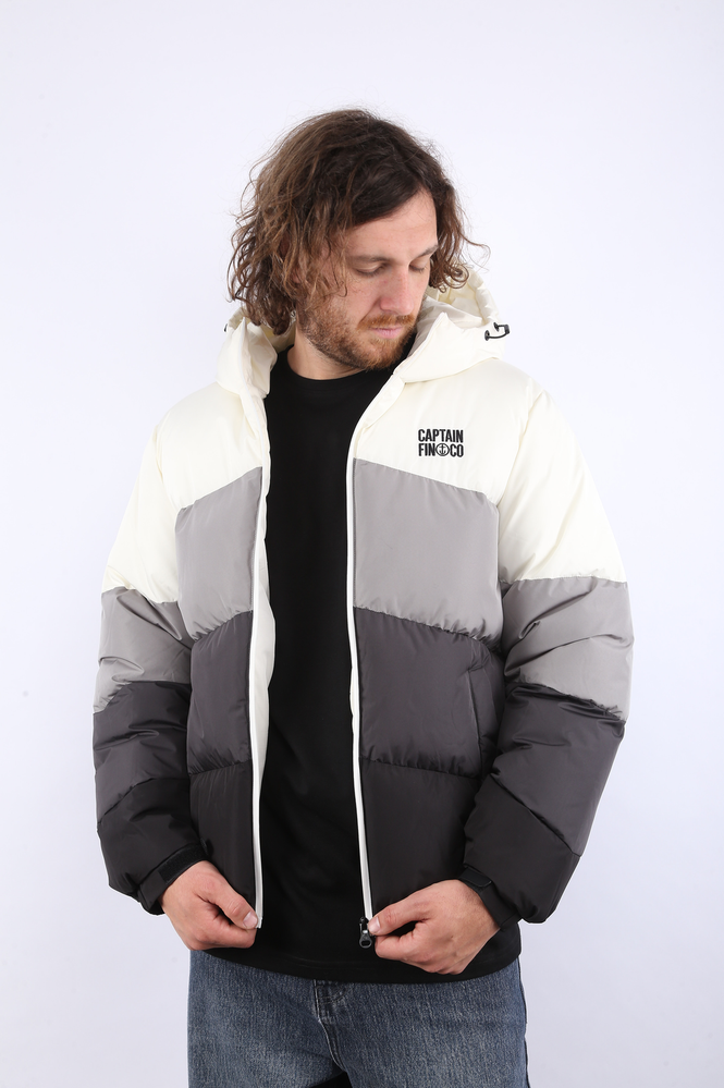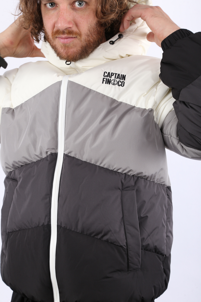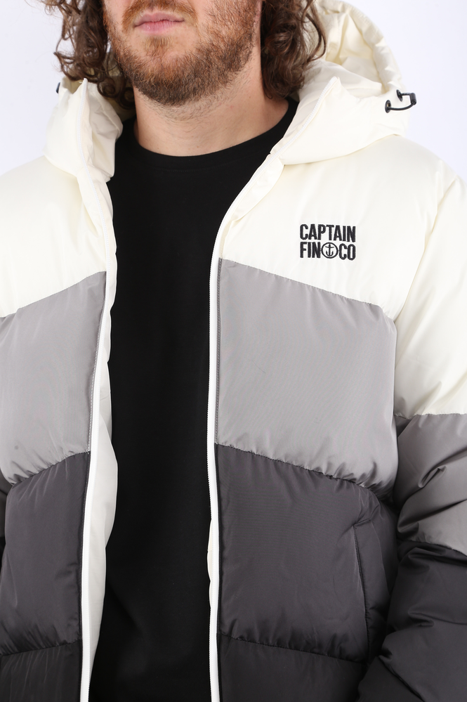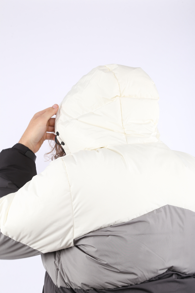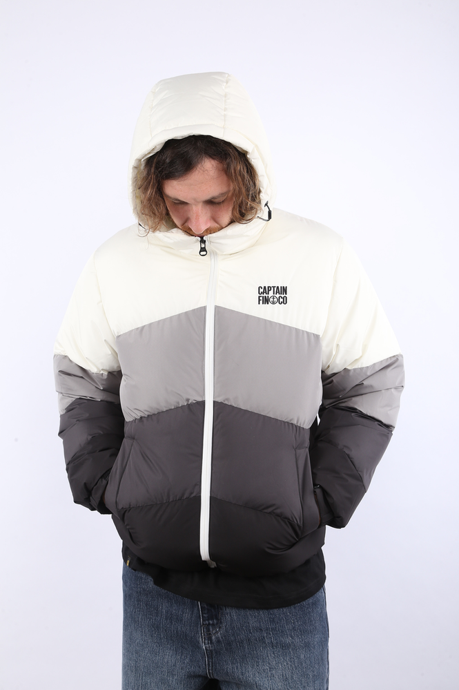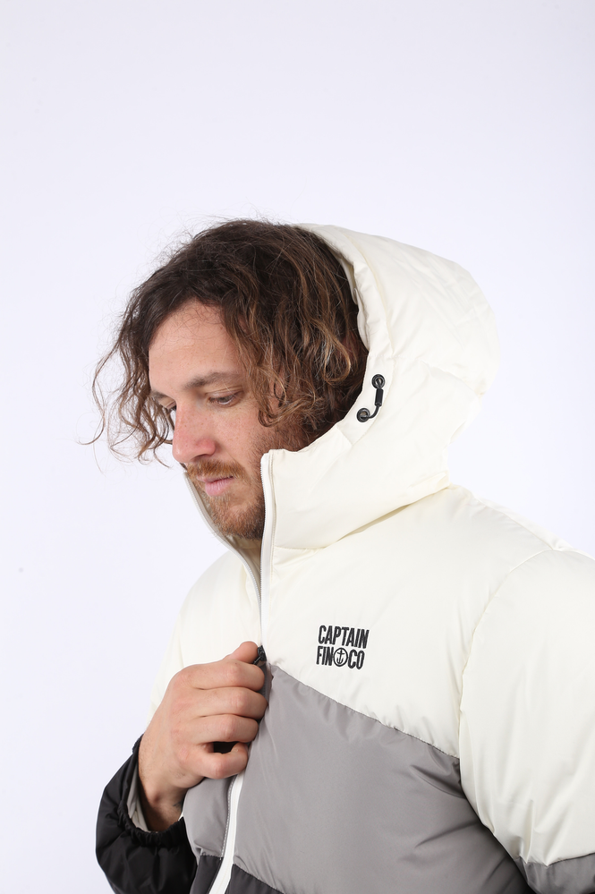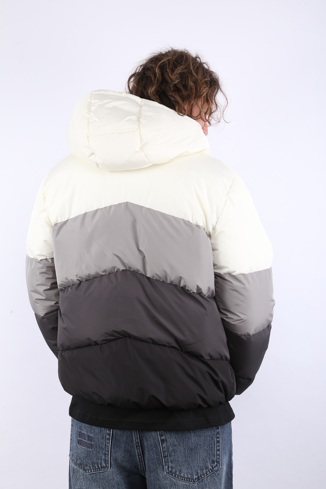 CAMPERA ACOLCHADA CON CAPUCHA AJUSTABLE Y CIERRE FRONTAL. BOLSILLOS LATERALES CON CIERRE INVISIBLE Y BOLSILLO FUNCIONAL EN MANGA IZQUIERDA. DETALLE BORDADO EN DELANTERO Y COSTURAS HORIZONTALES QUE FORMAN LOS CANALES DE RELLENO. PUÑOS Y RUEDO CON ELÁSTICO INTERNO PARA MEJOR AJUSTE.