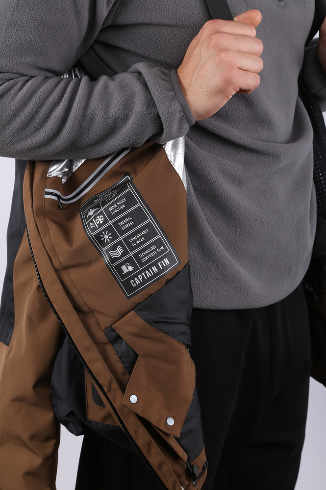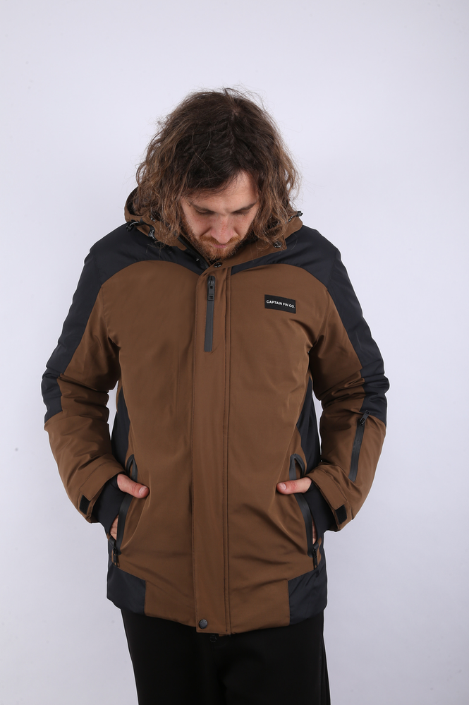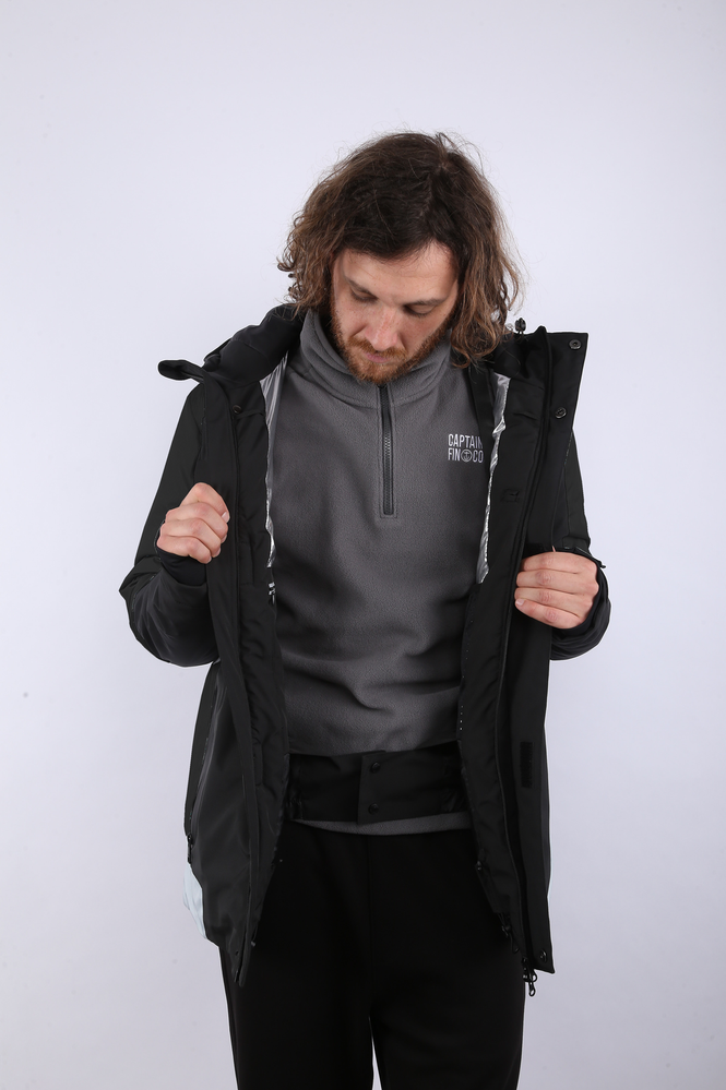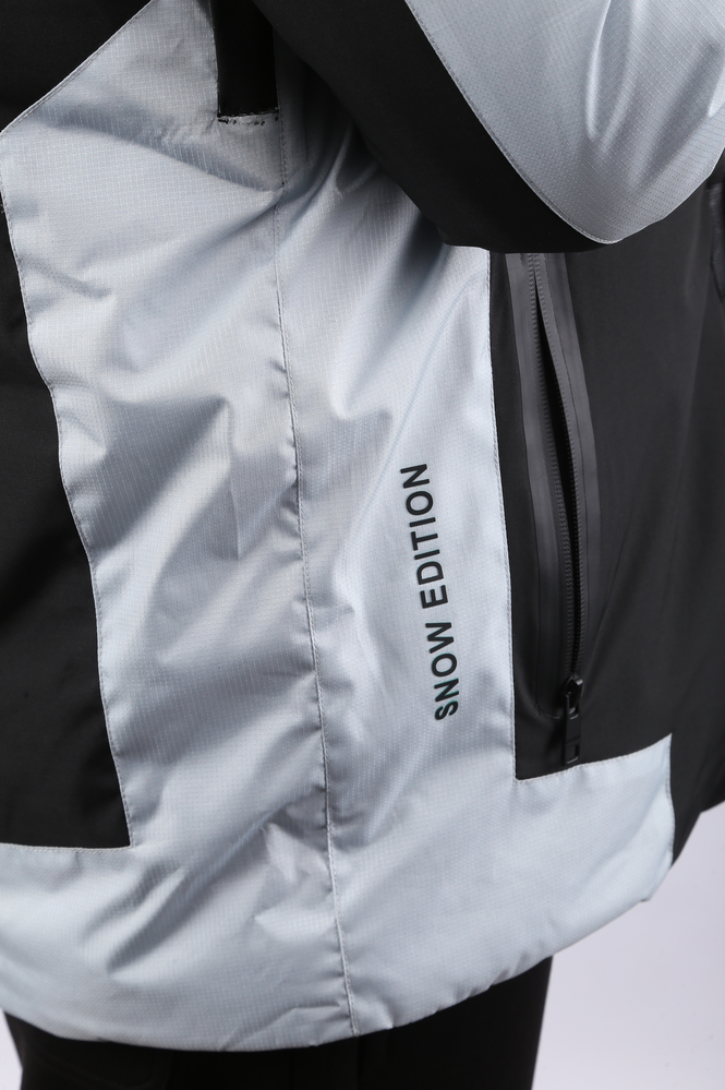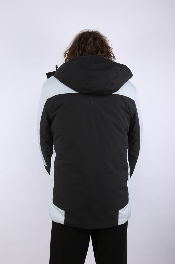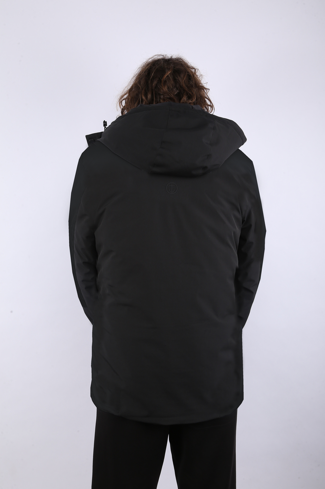 CAMPERA CON CAPUCHA AJUSTABLE MEDIANTE CORDÓN ELÁSTICO Y TOPE PLÁSTICO. CIERRE FRONTAL CON TAPETA Y BROCHES A PRESIÓN. BOLSILLOS LATERALES CON CIERRE IMPERMEABLE Y DETALLE DE ESTAMPA EN LATERAL. PUÑOS AJUSTABLES CON VELCRO Y PROTECCIÓN INTERNA. DETALLE ESTAMPADO EN DELANTERO EN ESPALDA ALTA. PIEZAS CONTRASTANTES EN HOMBROS, MANGAS Y RUEDO. COMPOSICIÓN: 100% POLIÉSTER EL MODELO USA TALLE M