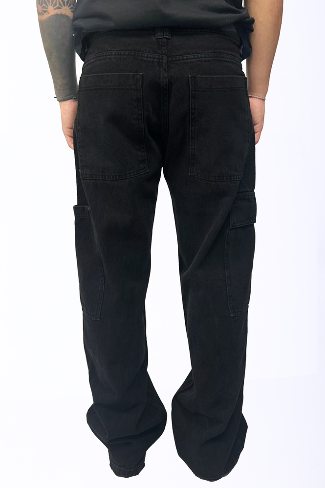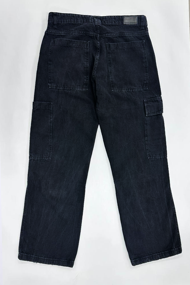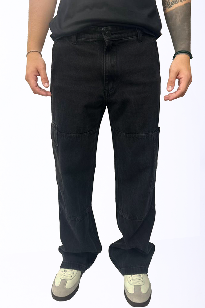 PANTALON CARGO DE JEAN 100% ALGODON CON AVIOS PERSONALIZADOS Y BOLSILLOS LATERAL AMPLIOS